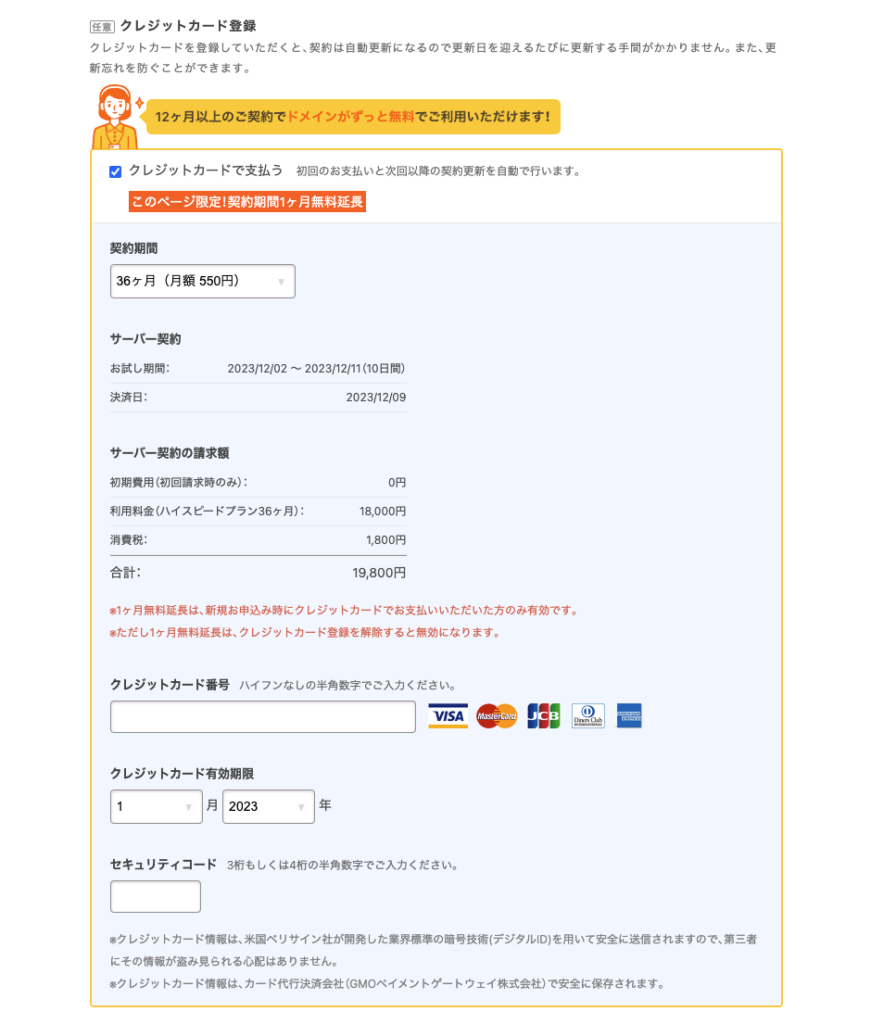 最初の出費はかかりますが、かなりお得に契約できます。 - クレジットカード番号