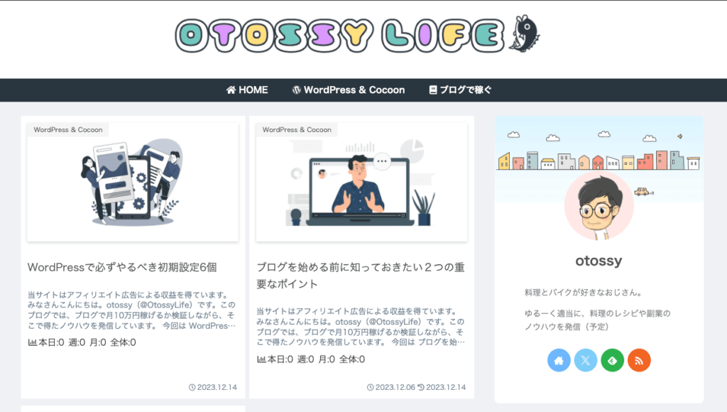 ↓テーマ「Cocoon」を設定した場合