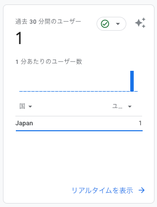 過去30分のユーザが「1」と表示されていればOKです。