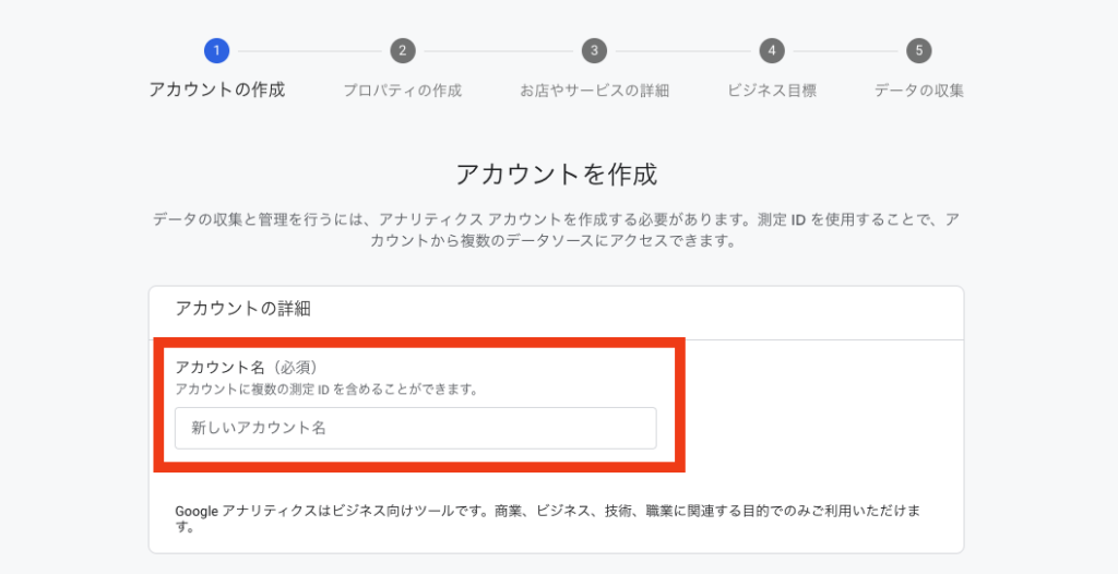 「アカウント名」を登録します。
