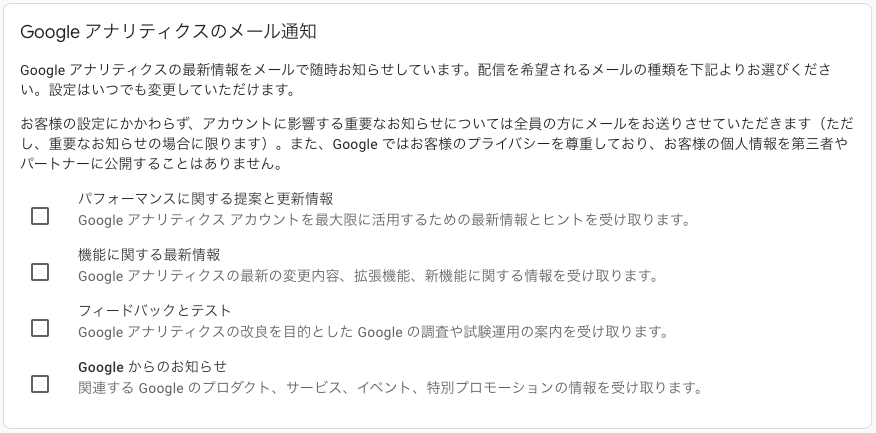 以下のようなメール通知設定が開く場合は何もチェックをつけずに保存をクリックしてください。
