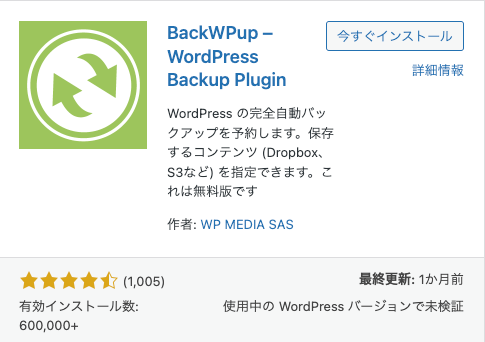 BackWPupはWordPressのファイルやデータのバックアップを保存してくれるプラグインです。