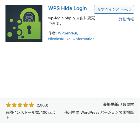 「WPS Hide Login」はWordPressの管理画面へのログインURLを変更できるプラグインです。